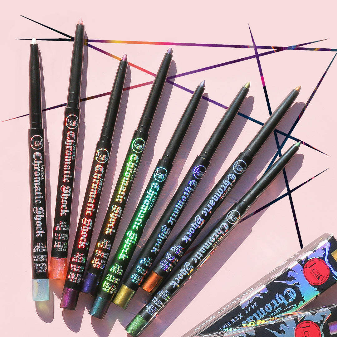 Unleash your creativity with the Metal Chromatic Shock 24/7 XTreme Eyeliner – a retractable eyeliner that glides on effortlessly to deliver bold, smooth lines with every stroke. This unique eyeliner offers a stunning color-shifting effect, with some shades featuring high-intensity shimmer for an eye-catching look. Designed for the daring, this long-lasting formula is smudge-proof, ensuring your look stays flawless all day. Plus, it comes with a built-in sharpener at the bottom of the pencil for precise application every time.